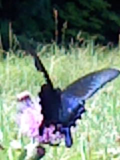 いる物体を見たら、小さな蝶々が2匹縦に並んで飛んでいるところだった。