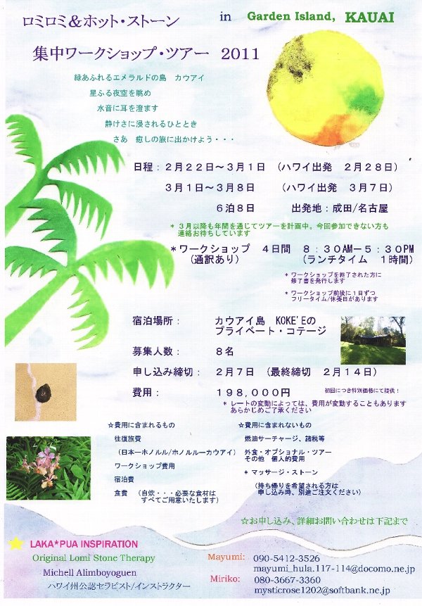 唐突ですが・・・・ハワイの伝統的マッサージ、ロミロミとホット・ストーンの