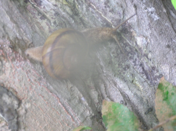 この写真を撮ったときは、タイミングよく大きなカタツムリも切り株を横切っている最中で